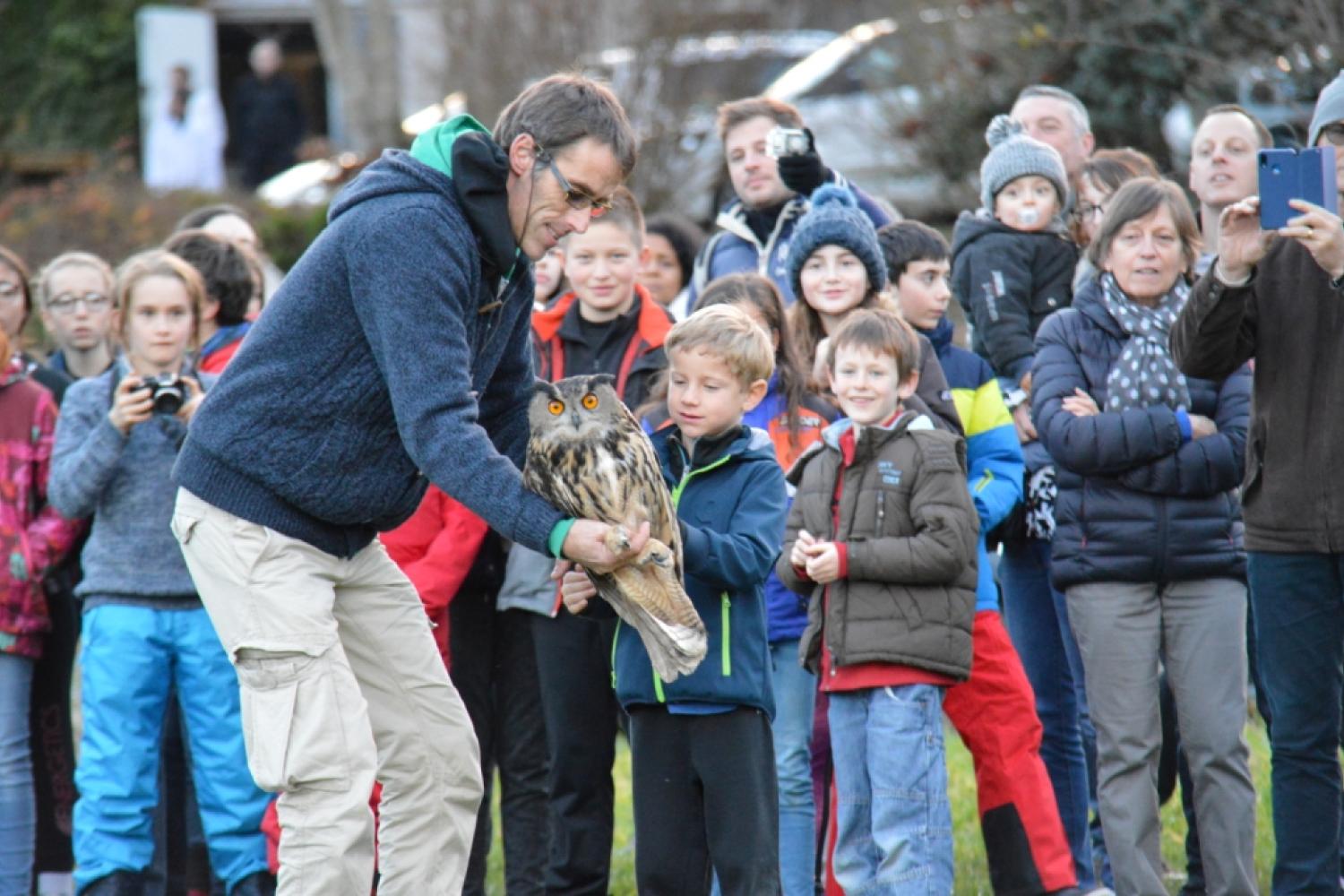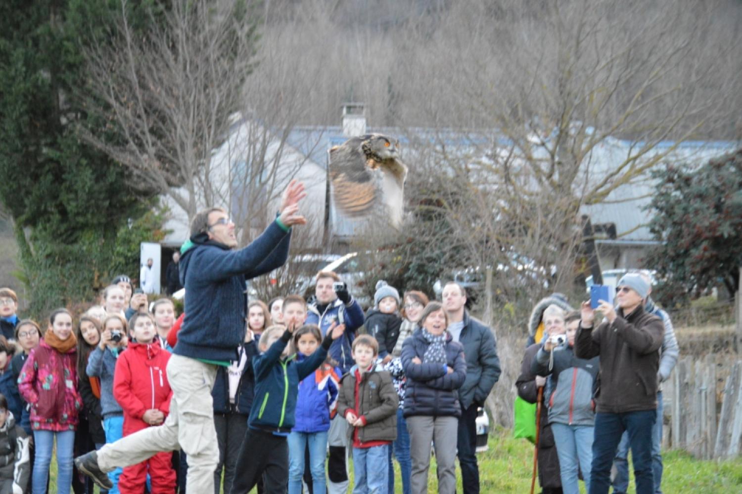 Ses grands yeux orange, son calme apparent et le silence de son envol ont marqué les esprits de la cinquantaine personnes présentes au relâcher du grand-duc intervenu mercredi 19 décembre 2018 en vallée d’Aure.