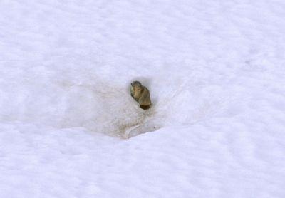 En hiver, la marmotte utilise un terrier plus bas en altitude et plus profond qu’en été, afin de se préserver du froid.