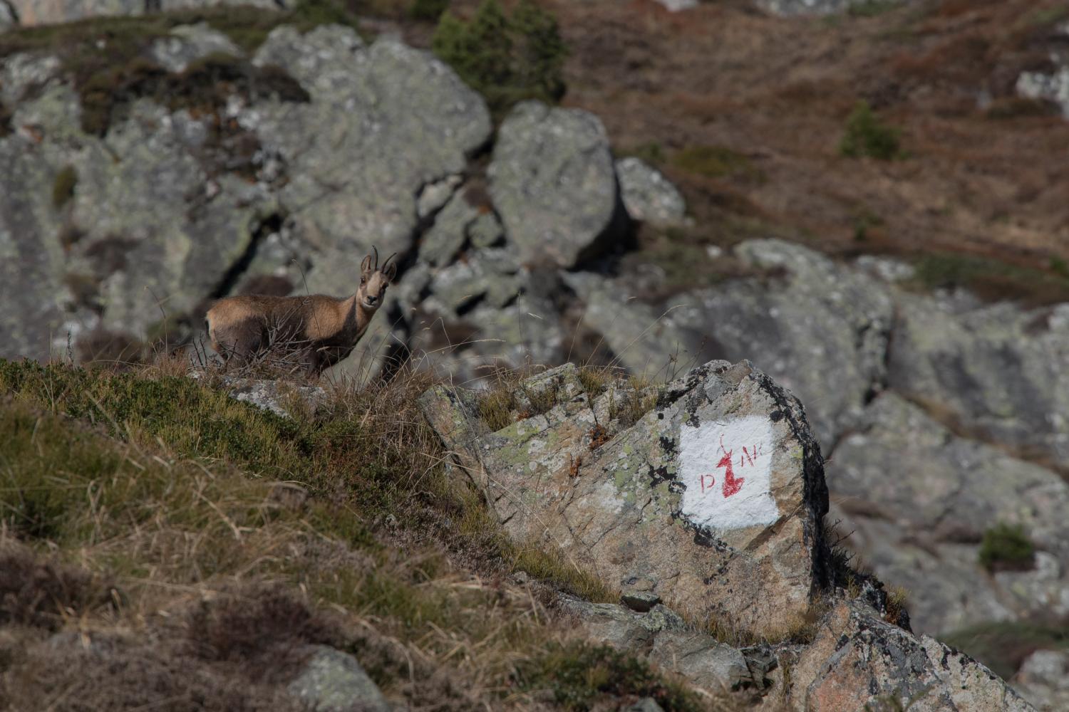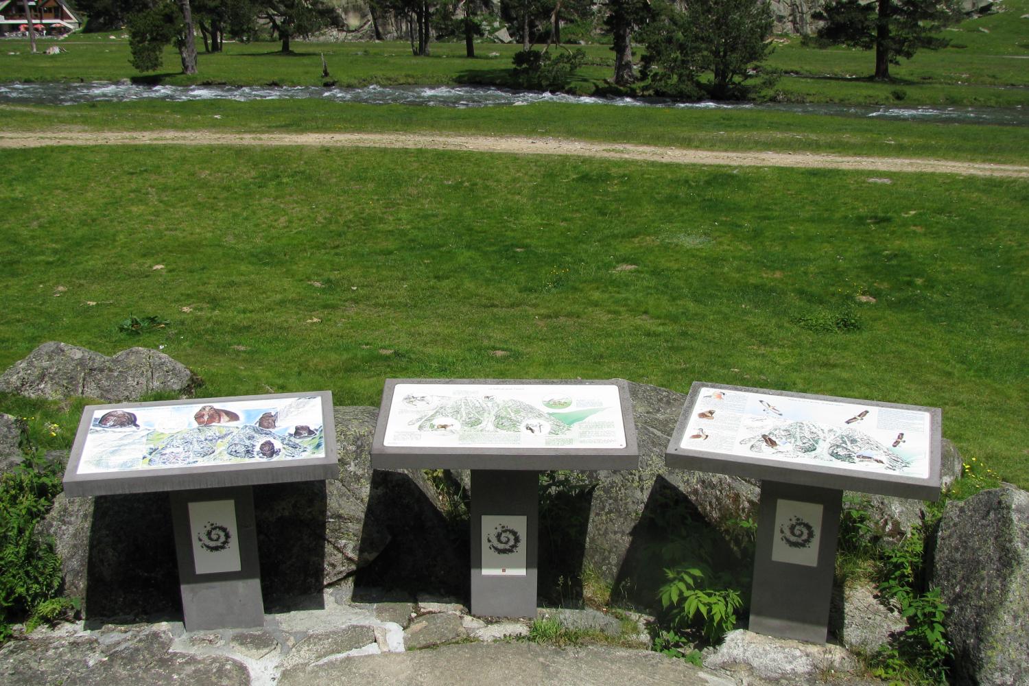 En construction. Face à face entre l'isard, symbole des Pyrénées, et la "tête d'isard", peinture qui délimite l'Aire optimale d'Adhésion du Parc national des Pyrénées, val d'Azun © L. Nédélec - Parc national des Pyrénées La "tête d'isard" : peinture qui délimite l'Aire optimale d'Adhésion du Parc national des Pyrénées, vallée d'Ossau © D. Peyrusqué - Parc national des Pyrénées Tables d'interprétation, plateau du Clot, vallée de Cauterets © M. Empain - Parc national des Pyrénées Signalétique directionnelle, vallée de Cauterets © M. Hervieu - Parc national des Pyrénées Panneaux de localisation à Orédon, Réserve naturelle nationale du Néouvielle, vallée d'Aure © M. Guillembet - Parc national des Pyrénées Panneau directionnel du Chemin de Saint-Jacques de Compostelle, vallée de Luz-Gavarnie © D. Pelletier - Parc national des Pyrénées Panneau de prévention de risques liés aux lâchers de prise d'eau des barrages, val d'Azun © D. Pelletier - Parc national des Pyrénées Panneaux d'information et d’accueil situés en début de chemin de randonnées, val d'Azun © D. Pelletier - Parc national des Pyrénées Panneaux d'information et d’accueil situés aux abords du refuge d'Ayous, vallée d'Ossau © J. Combes - Parc national des Pyrénées Panneaux d'information situé sur le site du Pourtalet, vallée d'Ossau © C. Verdier - Parc national des Pyrénées Site du Pourtalet, vallée d'Ossau © C. Verdier - Parc national des Pyrénées Signalétique directionnelle, vallée de Luz-Gavarnie © M. Hervieu - Parc national des Pyrénées Panneaux relatifs à l'opération de sensibilisation pour la préservation du Grand Tétras, vallée d'Aspe © M. Guillembet - Parc national des Pyrénées Panneaux d'information et d’accueil, Réserve naturelle nationale du Néouvielle, vallée d'Aure © M. Kieken - Parc national des Pyrénées