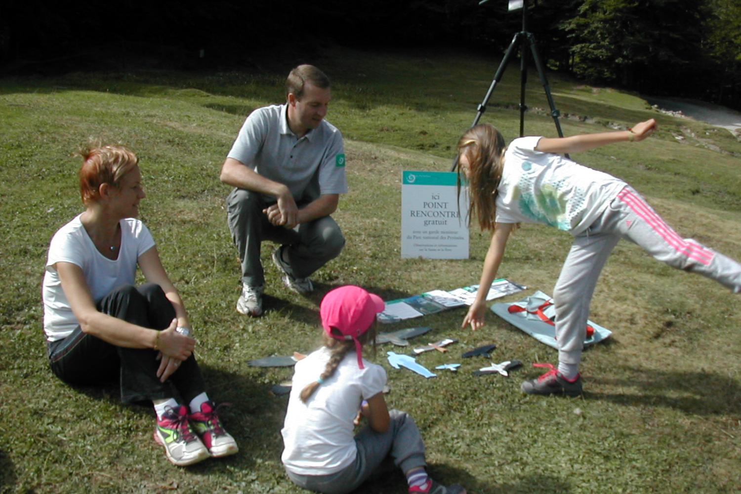 Certains jours, au cours de vos randonnées, vous pourrez rencontrer sur le terrain les agents du Parc national des Pyrénées. Equipés de longue-vue et de jumelles, installés aux abords des sentiers, ils vous invitent à partager des moments d’échanges informels et conviviaux. N’hésitez pas à vous arrêter, parler avec eux en leur posant sur place mille questions.