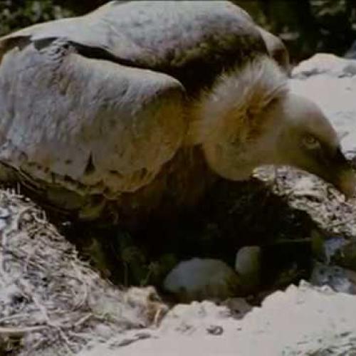 En couple pour la vie, le Gypaète barbu est particulièrement attentionné dans sa relation à l’autre. Après des parades nuptiales démonstratrices (vol en tandem, offrande d’os, acrobaties aériennes, becquetage mutuel du cou et de la tête...), le couple choisit le nid et le restaure ensemble au besoin. La femelle y pondra un œuf qui sera couvé en alternance afin de le conserver au chaud et de le protéger des prédateurs naturels tels que les grands corbeaux. Sur ces images, la femelle revient au nid afin de prendre la relève du mâle. Avec précaution, elle retourne l’œuf. Chaque adulte se libère ainsi quelques heures afin de s’alimenter et de se détendre les plumes. Le long cycle de reproduction du casseur d’os dure 10 mois. Dix mois durant lesquels ces vautours particulièrement sensibles au dérangement, ont besoin de quiétude. Images réalisées à grande distance du nid, en contre-bas, afin de respecter la quiétude des rapaces